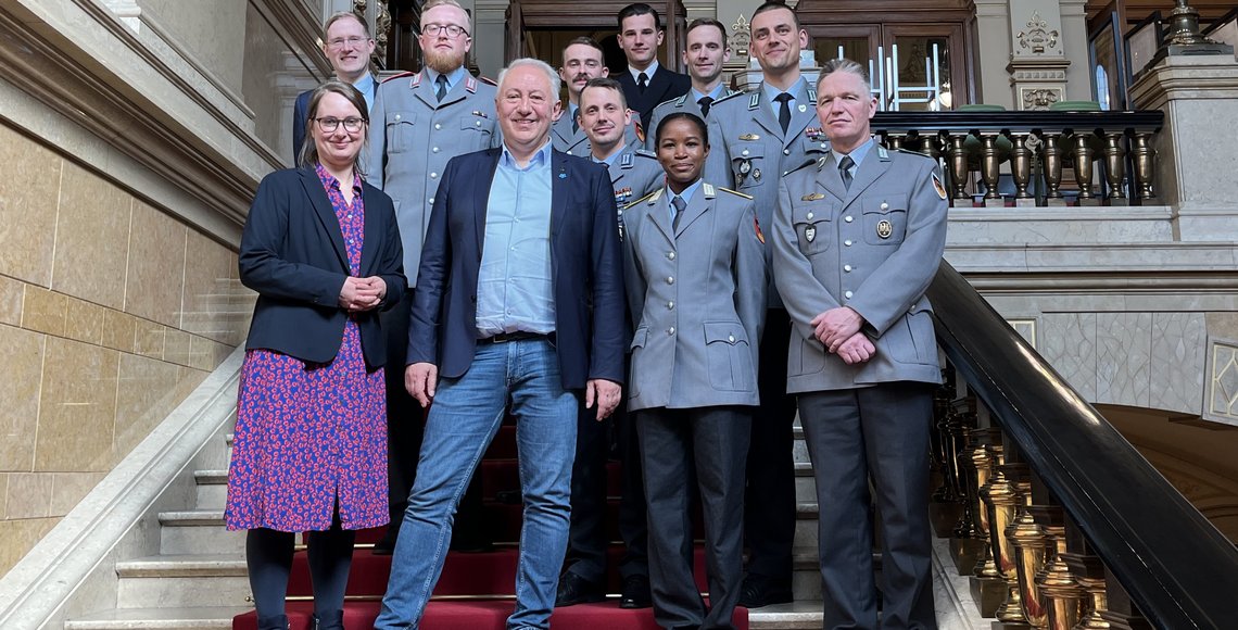 Unser Vorstandsvorsitzender Farid Müller überreichte die Urkunden an die Soldatinnen und Soldaten der Helmut-Schmidt-Universität/Universität der Bundeswehr Hamburg, der Führungsakademie der Bundeswehr und des Landeskommandos Hamburg.