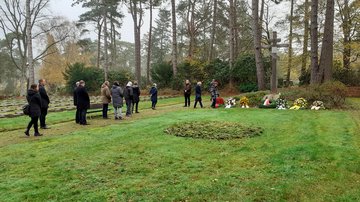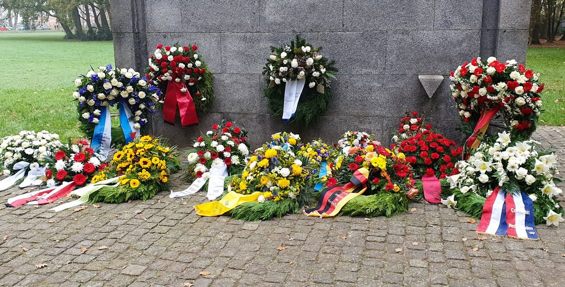 Während der Zeremonie in Neuengamme sprach auch Franciska Henning, Nachfahrin des Widerstandkämpfers Georg Kieras, der Häftling im KZ Fuhlsbüttel war. Seitens des Volksbundes legten die Landesvorsitzende Karen Koop, ihr Stellvertreter Oliver Tenbergen und der Ehrenvorsitzende des Landesverbandes Reinhard Soltau einen Kranz nieder und gedachten der Toten.