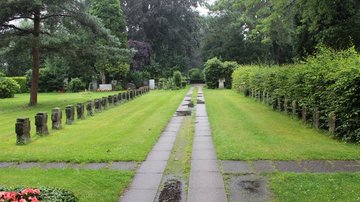 Auf dem Friedhof Rahlstedt befindet sich eine Anlage für 154 Kriegsgräber aus dem Zweiten Weltkrieg. Darunter sind Gräber von Bombenopfern, Soldaten aus ganz Deutschland, sowie unbekannten Toten. Das Gräberfeld C besteht aus 68 Kreuzsteinen, 87 Kissensteinen und einer Kriegsgräberstätte, die eine symbolische Sitzbank darstellt.