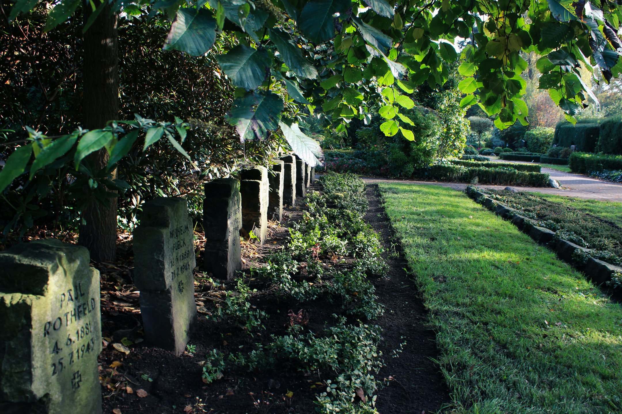Verschüttet, totale Verbrennung des Körpers oder erstickt - diese Todesursachen liest man in den meisten Sterberegistern der hier bestatten Kriegstoten. Sie sind allesamt infolge der Bombardierungen der Stadt im Zweiten Weltkrieg verstorben. Es sind Menschen aus Niendorf, Lokstedt und Schnelsen, die hier ihre letzte Ruhestätte gefunden haben.